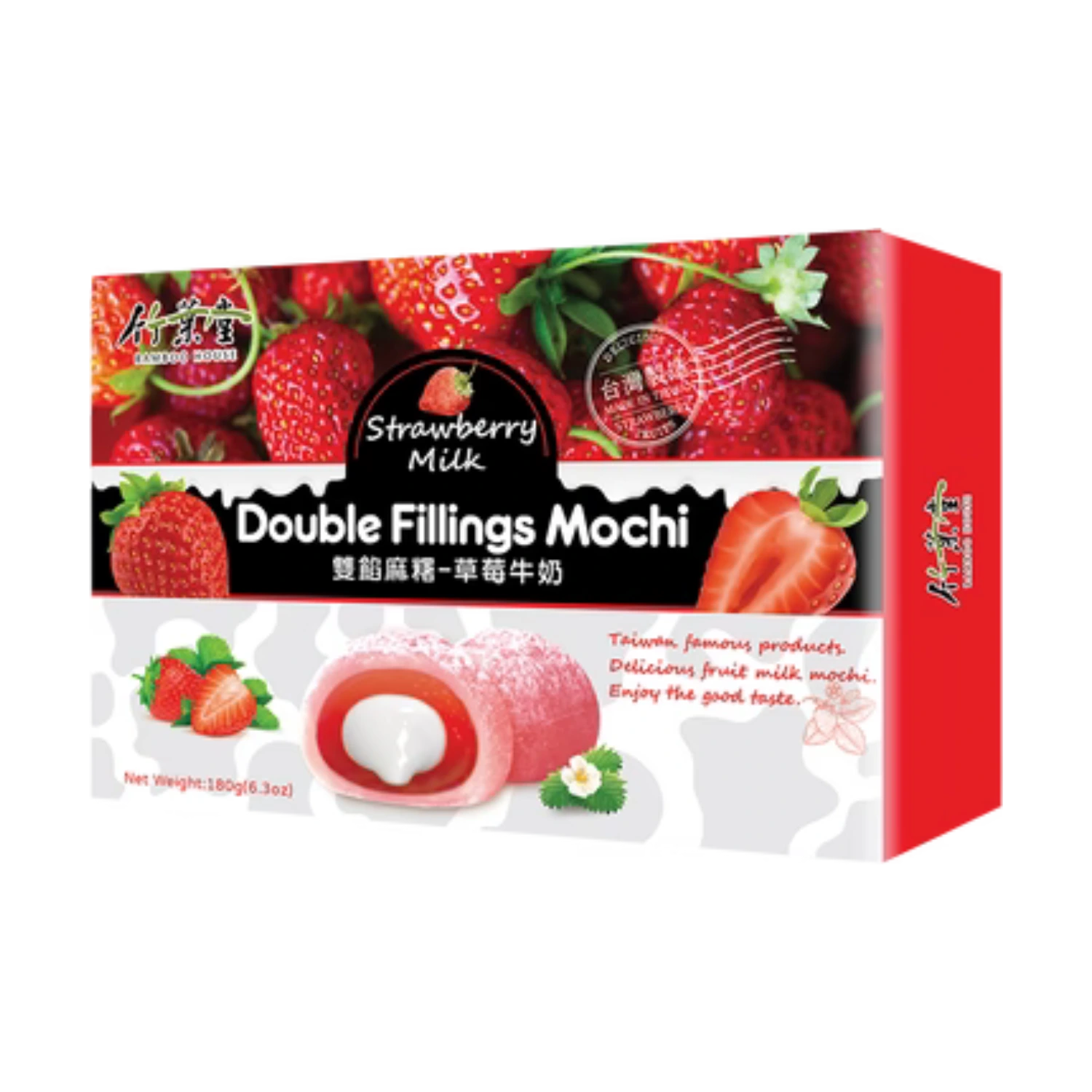 Bamboo House Double Fillings Mochi Strawberry Milk – Doppelter hält besser! Diese köstlichen Mochi präsentieren eine aufregende Neuinterpretation des beliebten japanischen Klassikers. Die süßen Klebreiskuchen bieten eine doppelte Geschmacksexplosion. Unter einer verführerischen Schicht aus Erdbeercreme verbirgt sich ein köstlicher Kern aus zarter Milchcreme. Perfekt für alle, die sich nach einem exotischen Geschmackserlebnis sehnen.