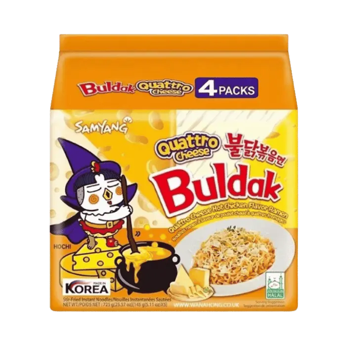 Buldak Ramen (wörtlich: "Feuerhuhn") ist ein Instant-Nudelgericht mit besonders scharfer Würze. Samyang hat mit dieser Rezeptur eine weltweite Fanbase aufgebaut – nicht zuletzt durch YouTube-Challenges und Social Media. Die Quattro Cheese Edition bietet nun eine cremigere, europäisch inspirierte Alternative mit kräftigem Käsearoma, ohne auf die gewohnte Schärfe zu verzichten.